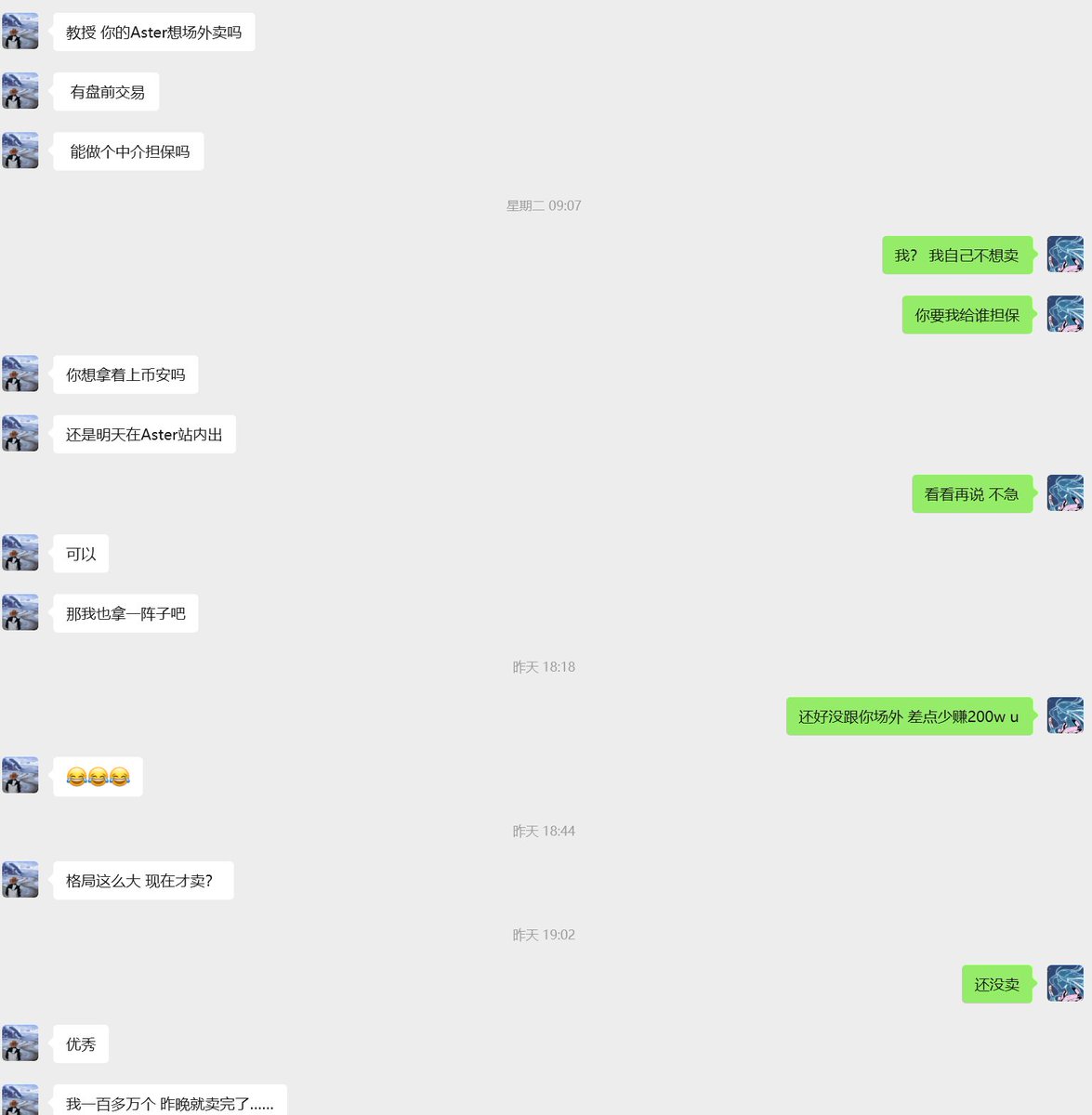 之前我帮 aster @Aster_DEX 项目方找过一些kol 投kol 轮,大部分说觉得贵,不投,然后让来刷交易也不来。现在个个赚几十万u,单币 1m 。你们投没投,投了多少,我这里都有表格🤣🤣🤣现在懒得拆穿。我想说作为 aster的创世用户,我当时存了太多把额度占满了项目方专门给我开了20m$的新额度。你们在哪里呢🤣。不信的可以找项目方验证,教授从不吹牛逼😄 $ast 牛逼!