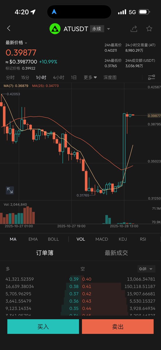 今天 $AT 突然拉了一根大的,感觉应该是个积极信号📶。这几天其实 $AT 的交易量不差的,日均千万,但是分歧巨大。
