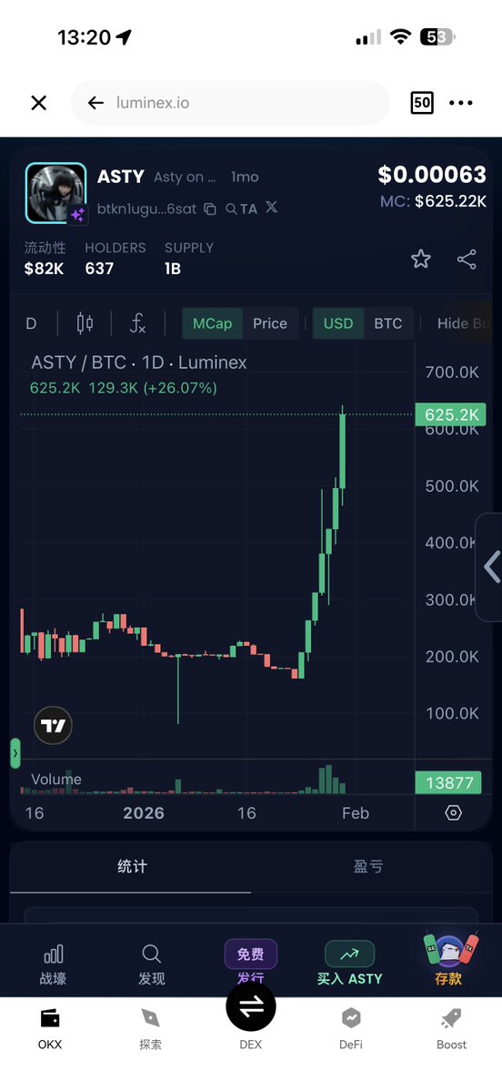 随后 @astyonspark 在其平台部署了第一个以 sat 为结尾的合约代币 $ASTY ,成为首个在 SatGo 上发射的 meme 代币。其市值目前涨至 60 万美元附近。