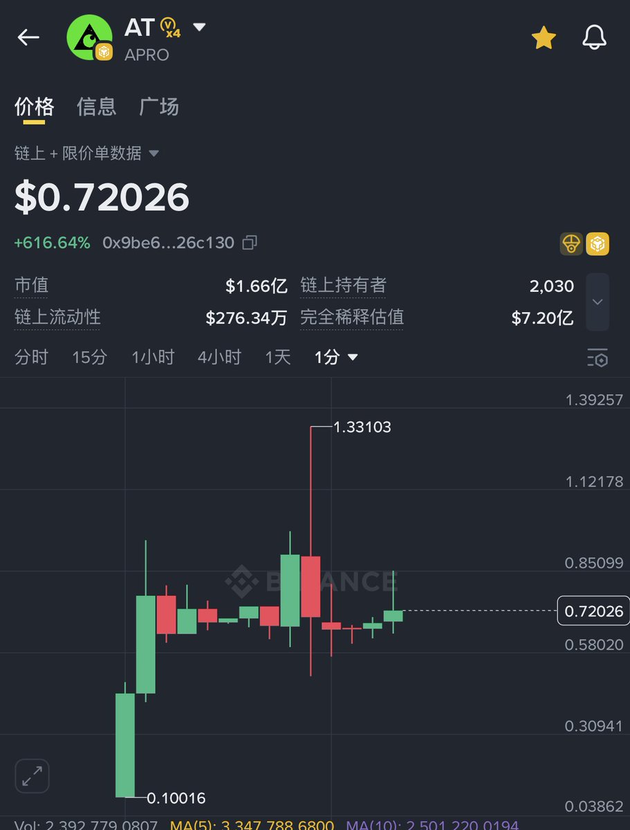 $AT 上线 Aster 从 0.1到狂飙10倍以上,而后回调到 0.3,但这两天又爆拉20%以上,看来背后有神秘力量明牌护盘 @APRO_Oracle 👀