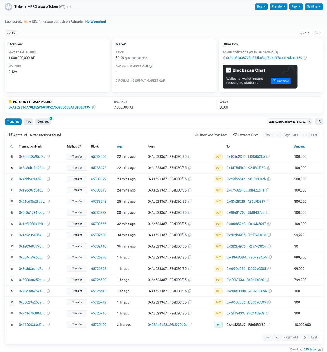 据说是 @APRO_Oracle 的老鼠仓在出货 $AT ,有没有技术哥扒一下。