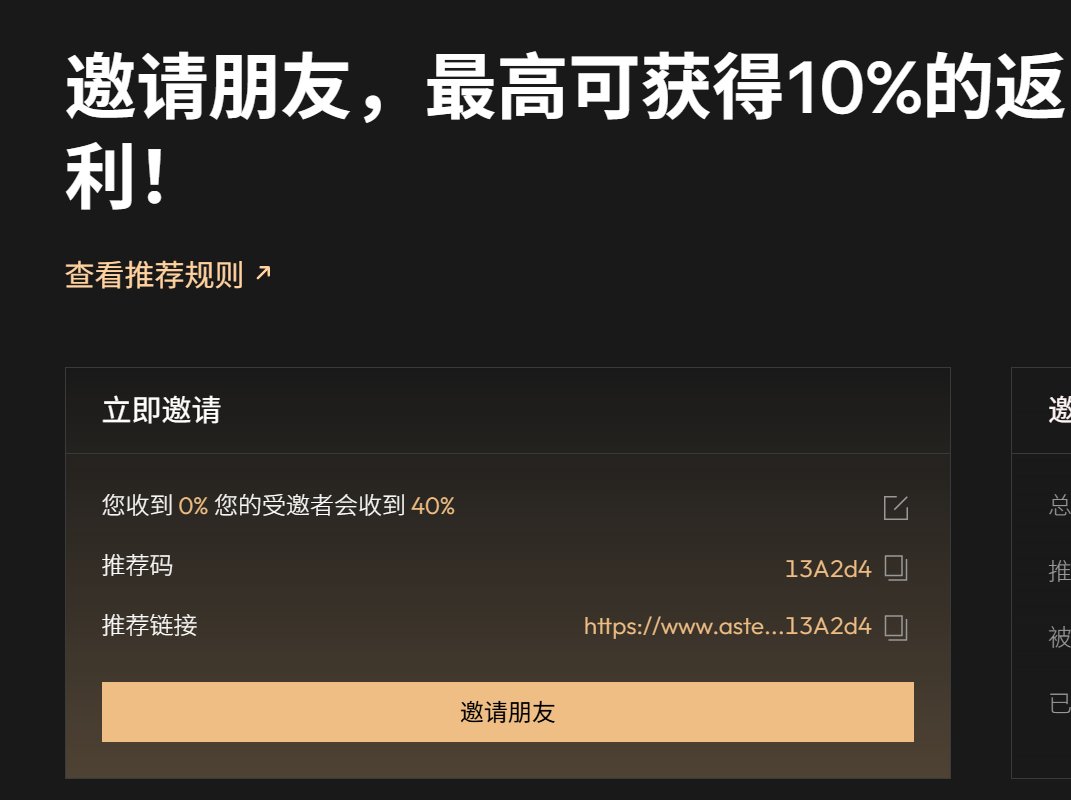 作为 $APX 和 $ASTER 早期投资者和信仰者,杰尼君福利一波全网最高 @Aster_DEX 返佣 40%,应该没有比我更高的了吧?