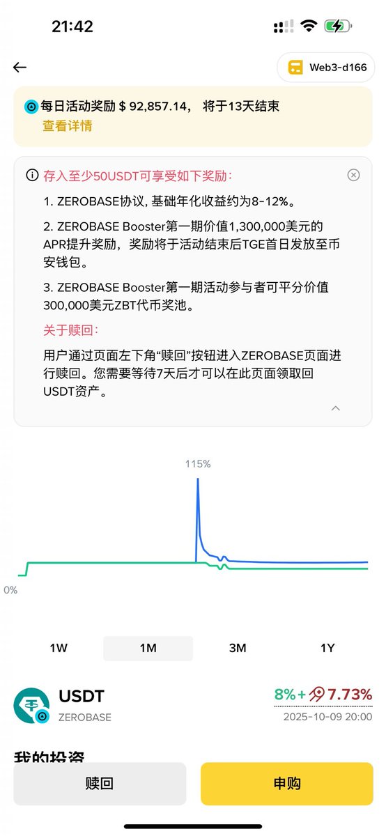 第一期 Zerobase 的质押活动结束了,我大概算了一下,每 100,000 美元的存款大概能给 331 美元的利率,综合年化收益是 9.3% ,另外还给了大概价值 260 美元左右的 $ZBT 空投预期,这个数字我记得不清楚了,要吐槽一下,我翻了要有一个小时都没有我之前质押时候得数据,我只是模糊记得我最后看到得数据大概是这个。