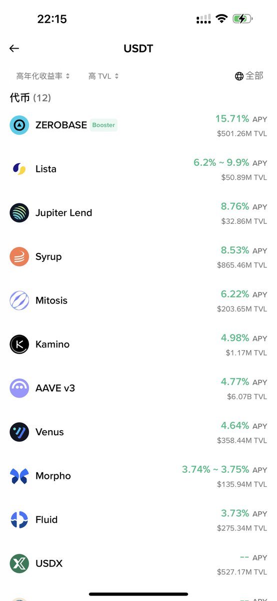 尤其是 ZBT 的价格也并不好保证,稍微有点差池可能就要亏损了,但即便是这样,我看一下 Zerobase 的收益也还是排行最高的,当然质押物在 #Binance 本身也是有利息的,比如 SOL 的利息大概是 3% 左右,所以看上去也是有利息的补贴,总的来说通过抵押借贷来借钱参加存款的活动的化,如果综合收益给的不到 10 % 借钱就划不来了。