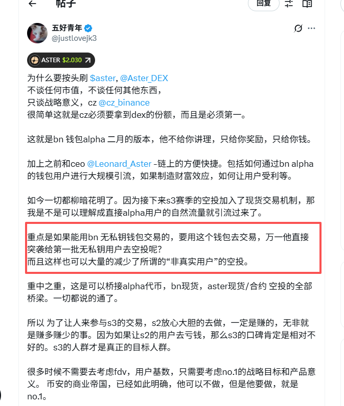 所以很多人会开始先卷 @Aster_DEX 二期了,只能说祝福大家了,至少这个比“纯干交易”简单点。