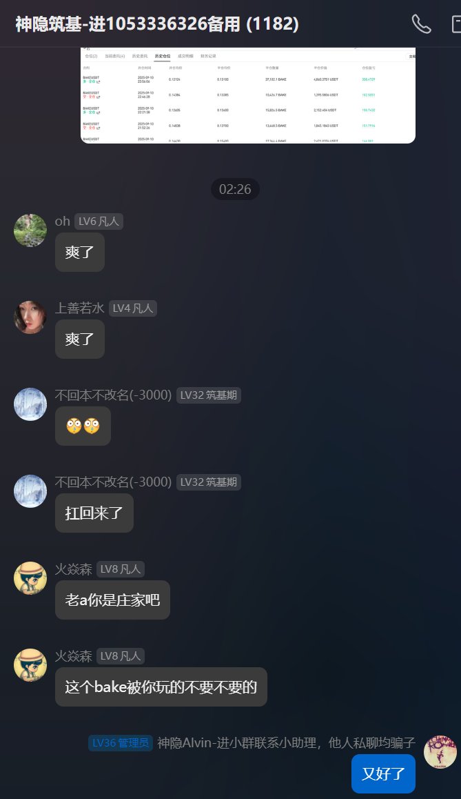 比如今天我研究员群里的兄弟用 100 刀打 $BAKE 干出了 14000 刀,这种刺激的多巴胺是很难有替代品的(我不是推荐都玩他这种,太暴力),但适当倍数的合约打这种印钞起来真的爽 😂😂