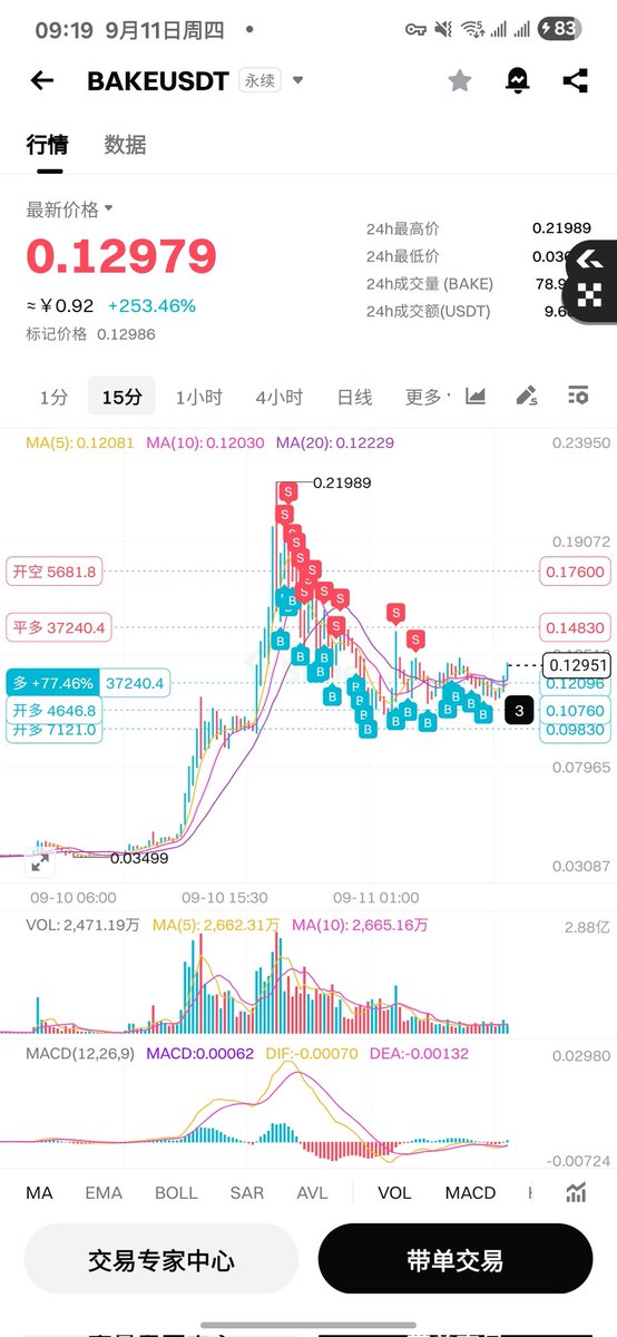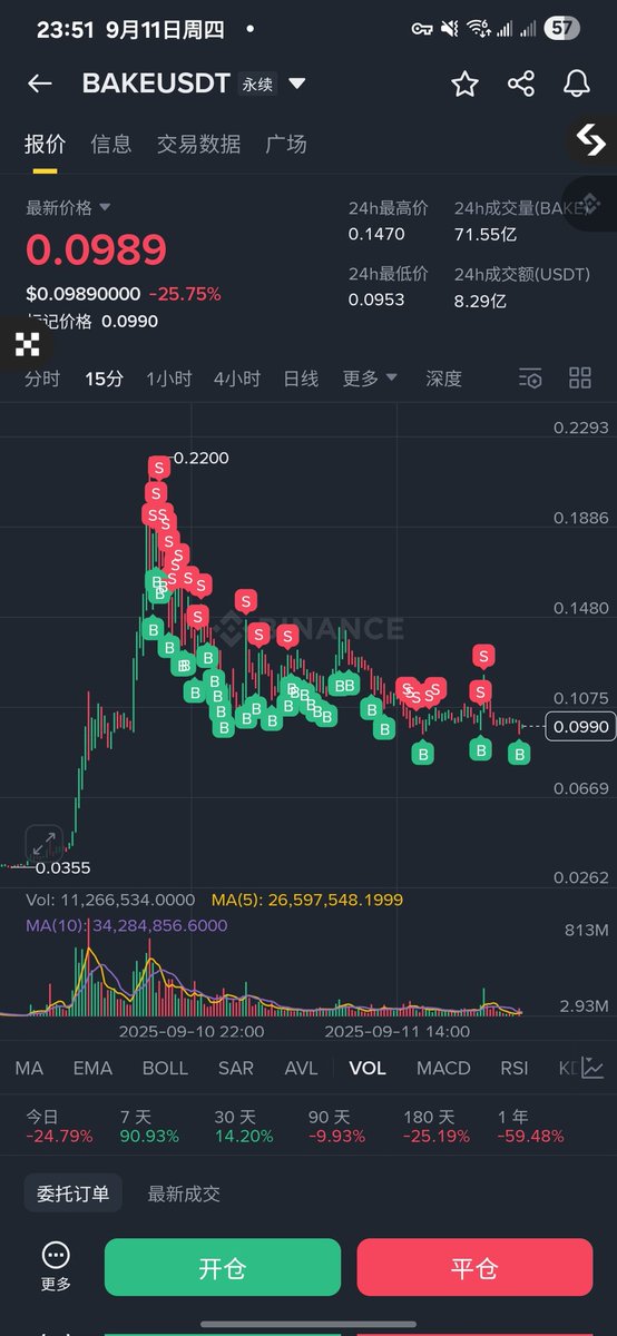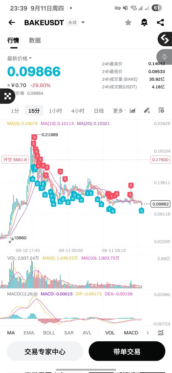 太爽了今天的 #bake $bake 带单,可惜 #okx 没法带,只能在 #binance 和 #bitget 带大家回血,单号快回血2k了,继续撸下去,e子亏的真的要被覆盖回来了