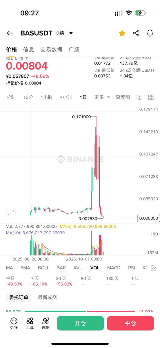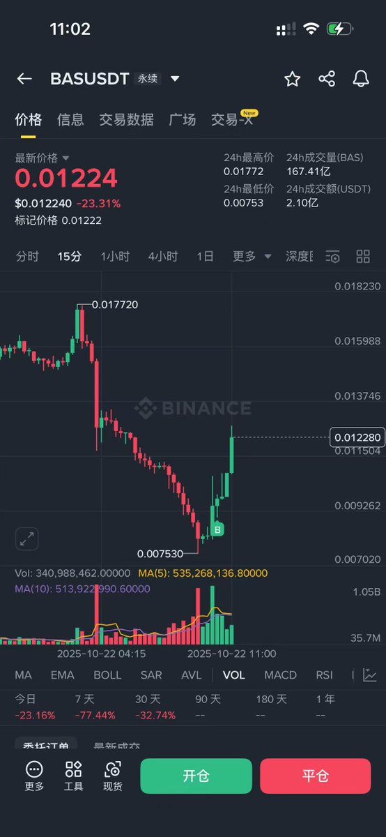 $bas 从建仓快 10 倍了,终于赢了一次,回点现货回撤的血。