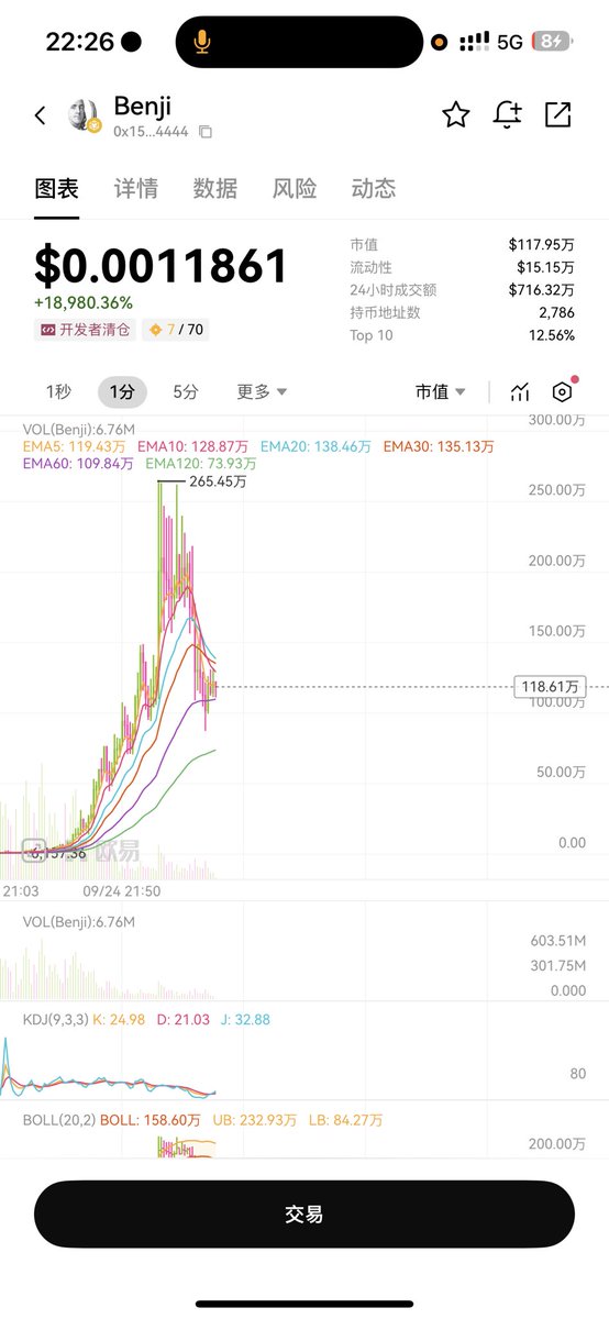 不知道 $benji 这个币能不能打开 BSC新闻热点盘上限 新闻出来,币在哪个链跑出来是最体现用户习惯的 BONK的 $ani 就失败了