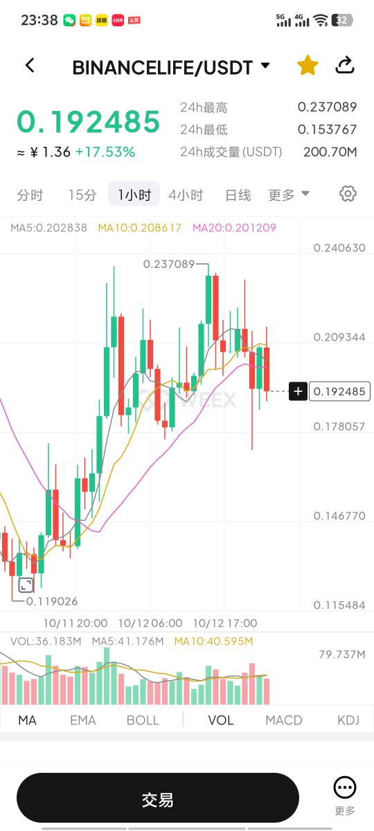 这几天在 @weexglobal_ch 看 #BINANCELIFE 的行情,价格整体在 0.20 USDT 左右波动,最高一度冲到 0.42,随后出现了小幅回调。