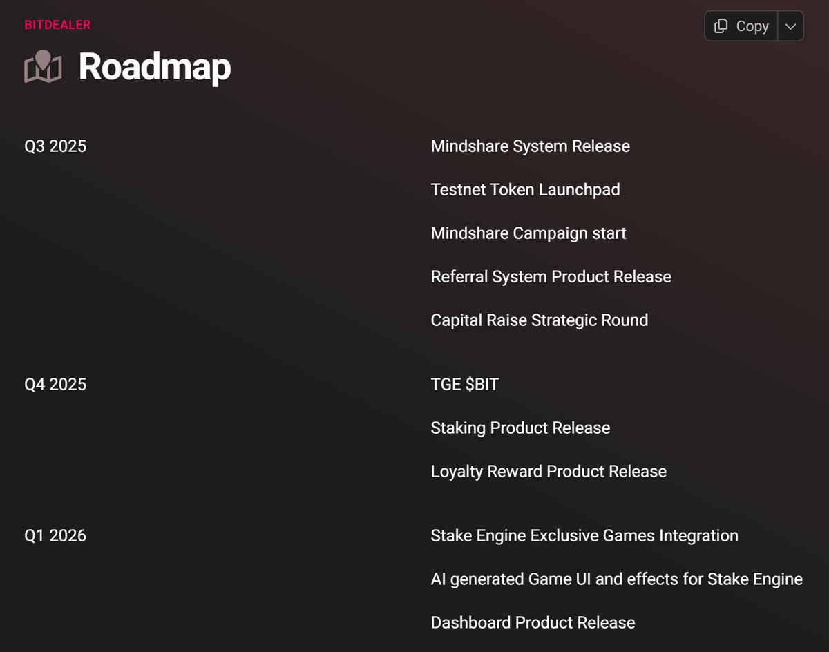 我又重新看了下 @bitdealernet 这项目的节奏真是越来越稳了。 Early Access 已经上线,Pre-TGE 也进入准备阶段,整个团队明显在为最后的阶段做冲刺。