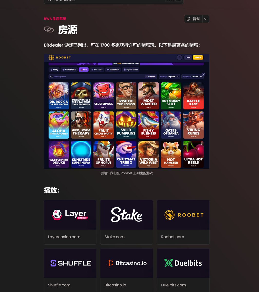 Bitdealer 的生态系统由官方合作伙伴 Meteora 和 Jupiter 提供支持,同时后续的游戏将会在1700多家在线博彩网站上线(这数字好惊人,只能感叹这种在线博彩业真的好发达)