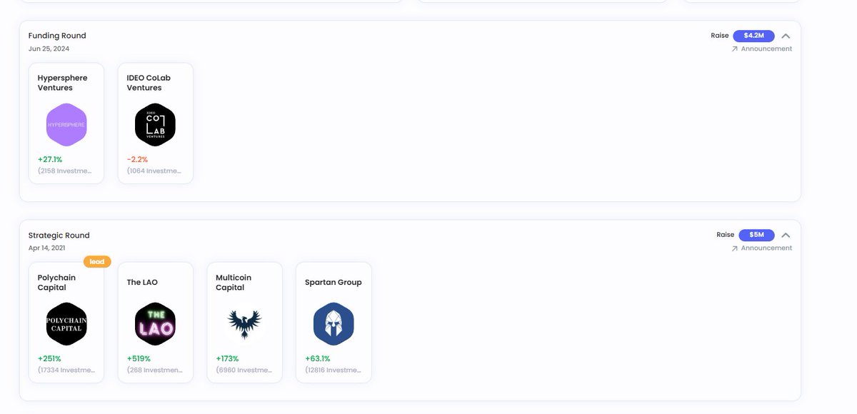 Polychain Capital、Multicoin Capital、Spartan Group、IDEO CoLab、Hypersphere Ventures 等顶级VC悉数登场。