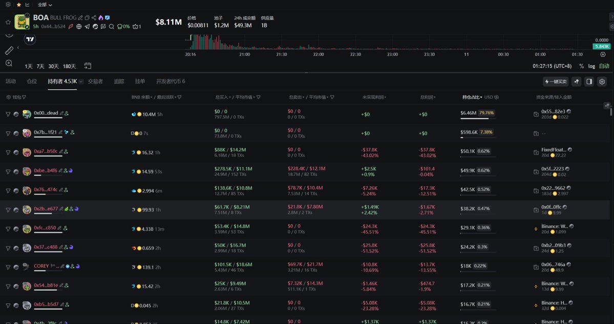 但这一波使用的是平均,我这一波冲MEME亏了能有2-3万U,希望能在这个空投回一口血。最后我想补充一句,有没有持有 $BOA 的兄弟,来个大佬CTO搞起吧,这项目各方面条件都不错!