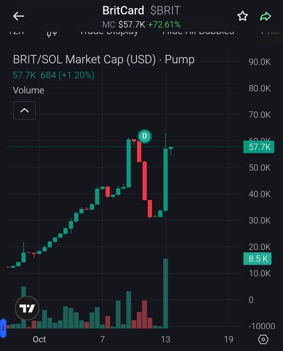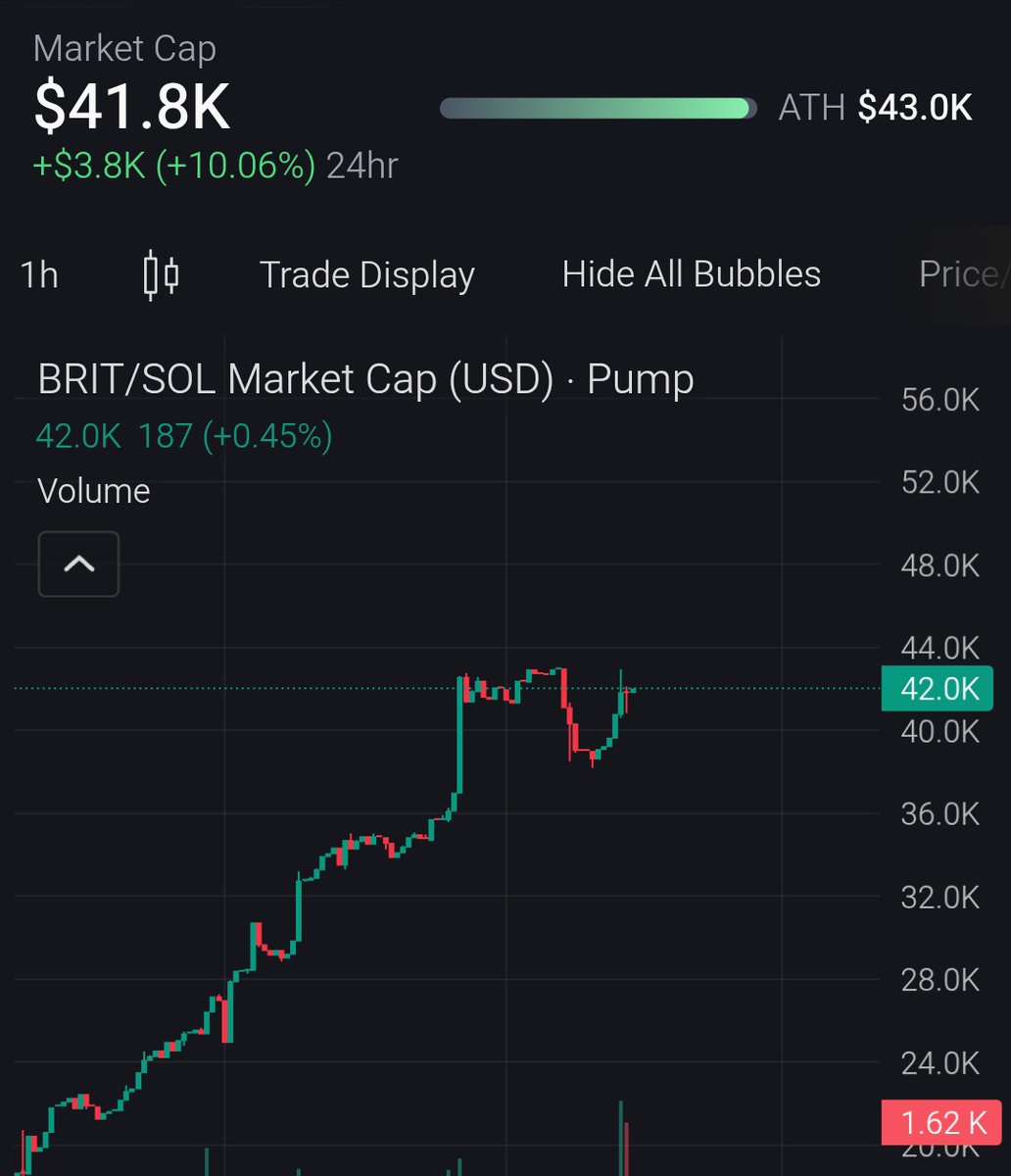 👀 许多模因被毁坏和消亡,$BRIT 不是其中之一,查看此图表以及历史性崩溃后的恢复情况,它位于 Pumpfun 的 $SOL 上,图表的外观令人印象深刻,