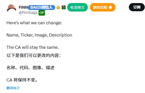 今天 Bags 的官推 @BagsApp 和创始人 Finn 的个人账号 @finnbags 都换上了帽子头像。