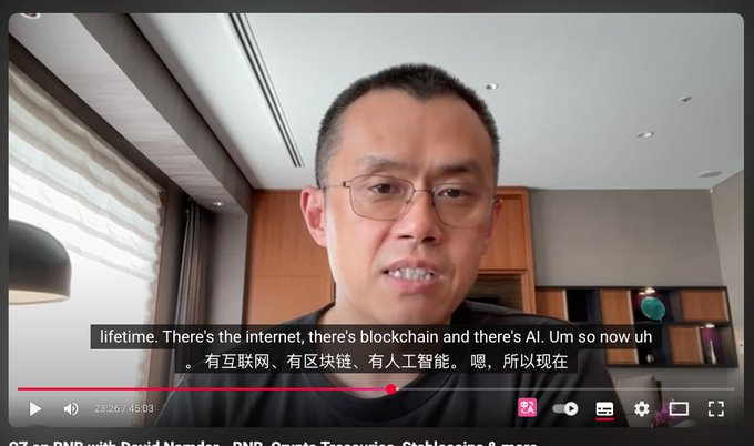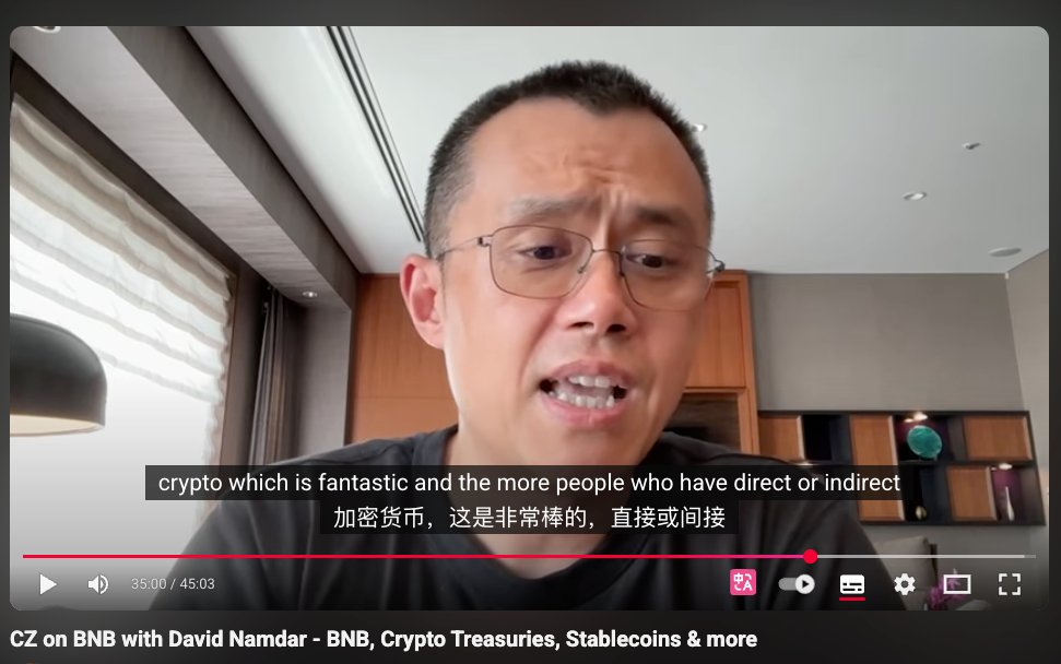 3 天前他与 BNC(BNB 在纳斯达克最大财库公司) 的 CEO @namdar 进行的访谈其实很有含金量,但到现在为止只有 2500 人观看过,其中有耐心全部看完的估计能有一半就不错了。