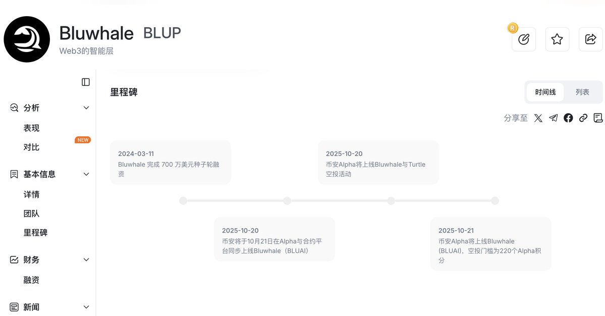 【同时上线币安Alpha和OKX Boost的项目Bluwhale空投了 -项目跟进】 ⭐️Bluwhale在币安Alpha和OKX Boost同时上线了。 ⭐️空投查询的链接,我放到评论区了,除了链上撸毛,在交易所这边“守株待兔”仍然是现阶段撸毛的“基本功课”。 1️⃣项目简介 ⓵Bluwhale @bluwhaleai 是一个去中心化的人工智能网络,为 Web3 的金融智能层提供支持。 ⓶通过融合人工智能、区块链和金融数据,Bluwhale 重新定义了个人和机构理解和管理财务的方式。 2️⃣代币分配 ⓵Bluwhale 代币总量100亿枚,初始流通12.28%。 ⓶最大的一部分(29.8%)用于生态系统与运营,以支持战略扩张和社区建设计划。 ⓷节点激励占 25%,用于奖励维护网络运行的验证者。 ⓸基金会与财库持有 21%,用于研发和长期发展。 ⓹23% 分配给各轮次的融资参与者。 ⓺团队与顾问的份额为 7%。 ⓻而剩余的 5% 则用于保障二级市场的初始流动性与做市。 3️⃣代币用途 ⓵固定供应量和销毁机制 ->其核心产品,鲸鱼评分,是一个实时财务健康指数,帮助个人和企业进行 AI 分析链上数据,随着用户的订阅和AI 交易和查询频率的增加, $BLUAI 代币的消耗需求也会增加,这是代币经济学的正向飞轮。 ⓶使用量驱动的节点经济 ->奖励是随网络活动而增加,并不是直接靠通货膨胀直接排放。 ⓷与DEX、DeFi 平台以及 Allium、Caldera、Walrus Protocol 等基础设施进行集成,以及通过 Wormhole 和基于Sui链实现的37 个 EVM 链之间的互操作性,扩大了 Bluwhale 代币的覆盖范围。 4️⃣上所时间 ⓵币安Alpha是今晚7点,币安合约是今晚7点30分。 ⓶现货的交易所有OKX、Kraken、Gate、MEXC、LBank和KuCoin,时间是今晚8点。 5️⃣币安Alpha链上交易目前是4倍积分。 https://t.co/KIaxEEK5ZA