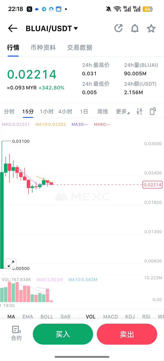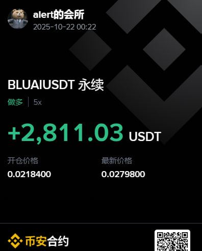 今天新上的合约币种 $Bluai 基本又是底部干进去的,社群基本成本价都在0.024附近! 财运来了,买啥都涨,他妈得,舒服!