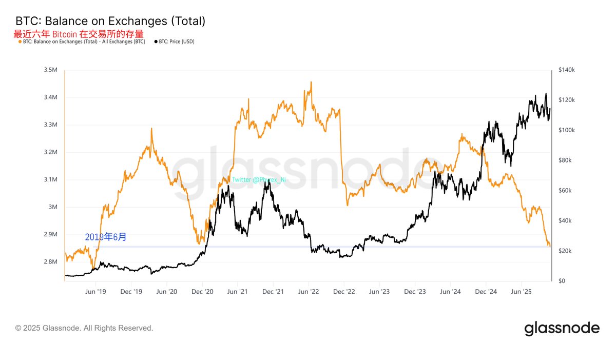 而这次能明显看到从川普参加完 Bitcoin 共识大会说出 BTC 战略储备以后,在将近一年的时间当中无论 BTC 的价格走势如何交易所的存量都是在降低的。