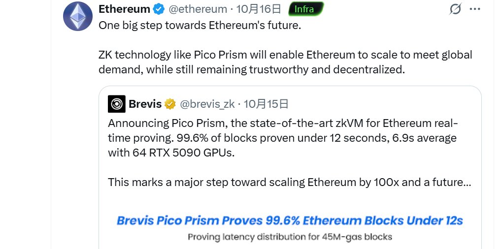 记住这个时间:11 月 3 号起,Brevis 将启动交易赚取积分活动 现在可以做的,就是完成社交任务累计积分(提前埋伏):https://t.co/h7kE7LyqtI 在过去 5 个月时间里,Brevis 通过其 hook 机制为 PancakeSwap 带来了前所未有的“会员制”体验。 传统 DEX 就像是没有会员制的超市——不管你是新客户还是老 VIP,都按统一价格结账。但 Brevis hook 彻底改变了这一切。 它为 PancakeSwap 带来了两套革命性的折扣机制: 代币持有者折扣 hook: 根据 $CAKE 平均余额自动计算费用折扣 最高 45% 的交易费用减免 无需质押,无需申请,系统自动识别 交易量折扣 hook: 基于历史交易量的分级折扣体系 覆盖多种主流交易对 交易越多,费用越低 Brevis 在链下进行复杂的数据分析和资格计算,生成零知识证明,然后在链上验证。5 个月时间里,累计生成了 17277767 个证明。 下一步是什么? Brevis 将和 PancakeSwap 更深度合作。 11 月 3 日后,用户在交易指定 PancakeSwap 池时(这些池子使用了 Brevis hook)将自动赚取积分。活动细节还未公布。 这个积分,大概率会成为未来的空投凭证。 所以,@brevis_zk 是目前少有的同时具备币安血脉和以太坊正统性的项目: ▌YZi Labs 领投 ▌V 神+以太坊官方钦点 ▌Pancake 深度合作 few