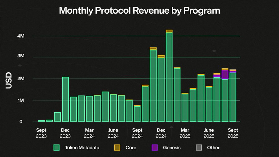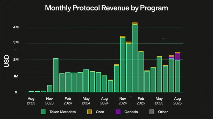 这个 @metaplex 上个月的协议收入有2.5M的,是近六个月最高的。其中110W拿来回购 $mplx