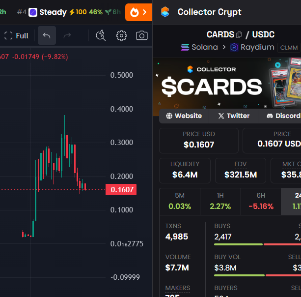 5、之前 @metaplex 搞的 $CARDS 在下跌一阵子后爆发,最高 8 亿美元市值,参与预售者获得近 20 倍收益