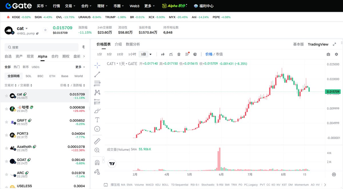 目前 $CAT 已经上线了 gate @gate 和 bitget alpha专区,上线当日即获得高度关注与深厚交易深度,交易量