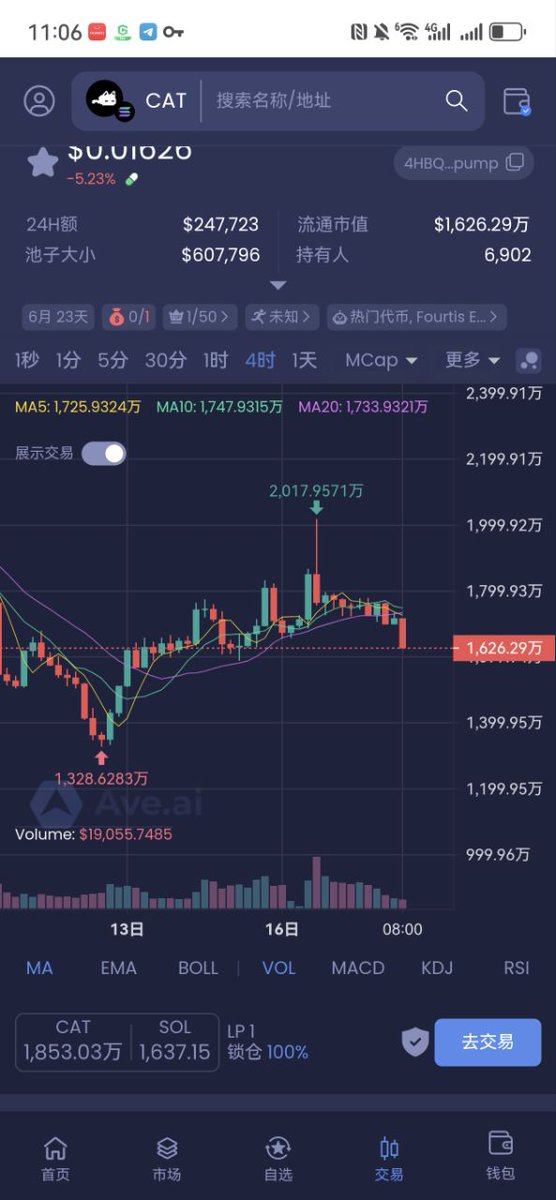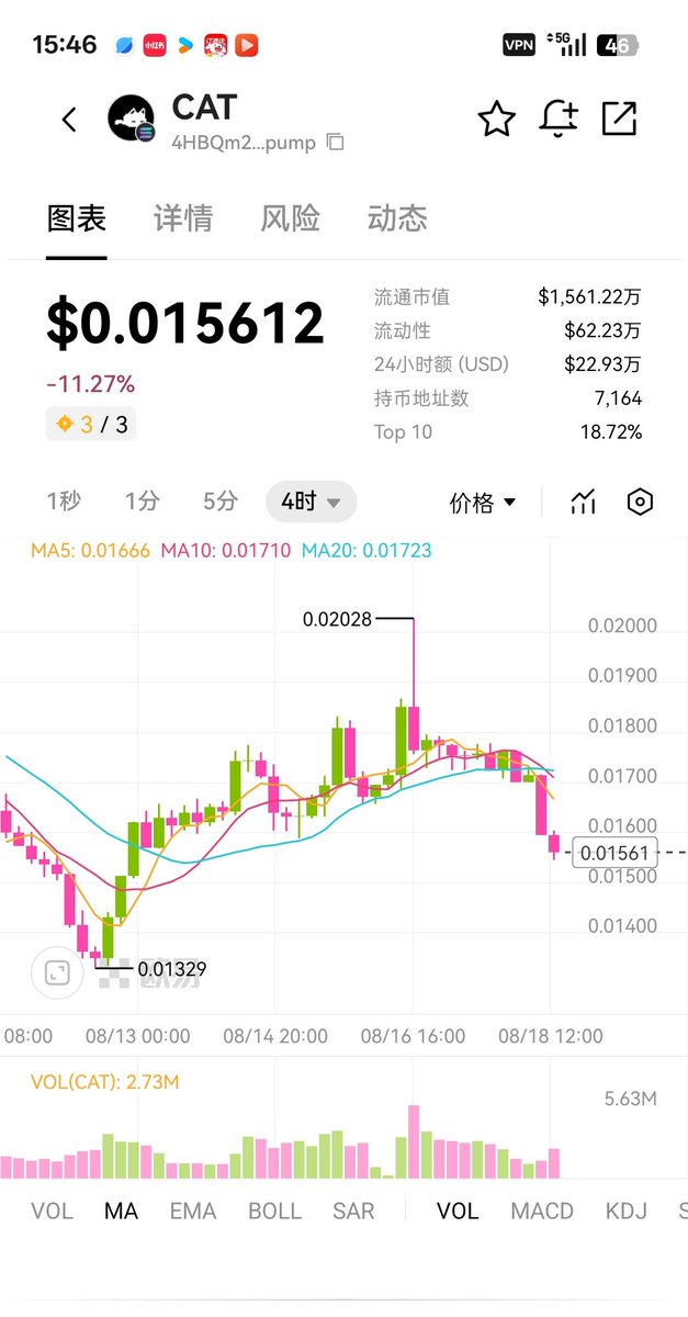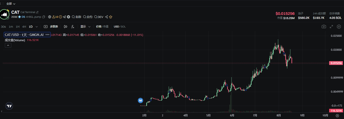 达到 $7M。小道消息,目前 $CAT 已进入头部交易所投研团队的视野,具备进一步上线现货、扩大市场影响力的潜力!下一个极有可能上线Binance Alpha专区。