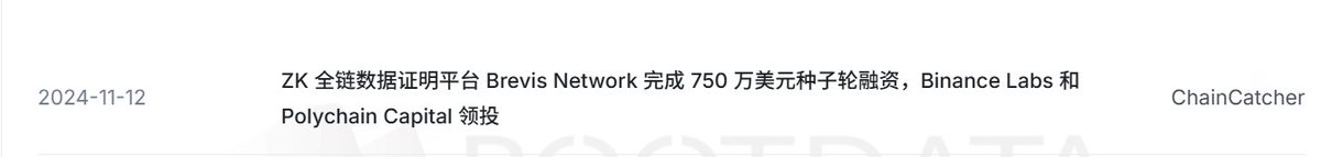 所以 Brevis @brevis_zk 确实有很大概率复刻这一路径。750 万美元种子轮,YZi Labs 和 Polychain 领投,Nomad Capital 跟投。作为 ZK 全链数据证明平台,技术壁垒够高,叙事空间够大。