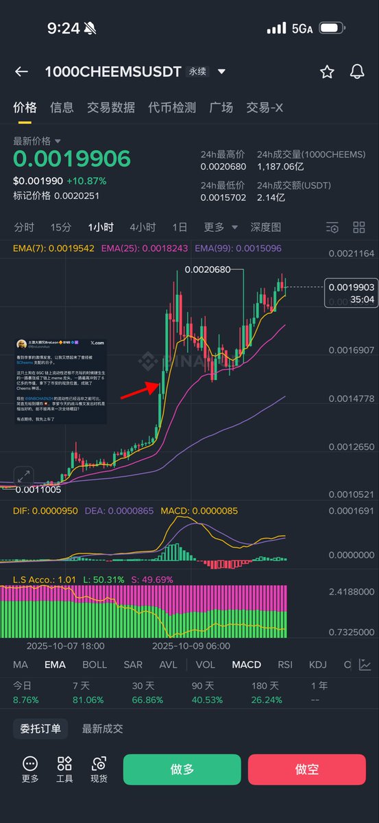 毕竟上一批上 @binance 现货后就一路浇给的是99%,只有 $CHEEMS 没浇。