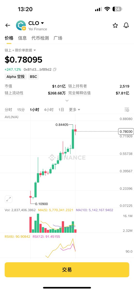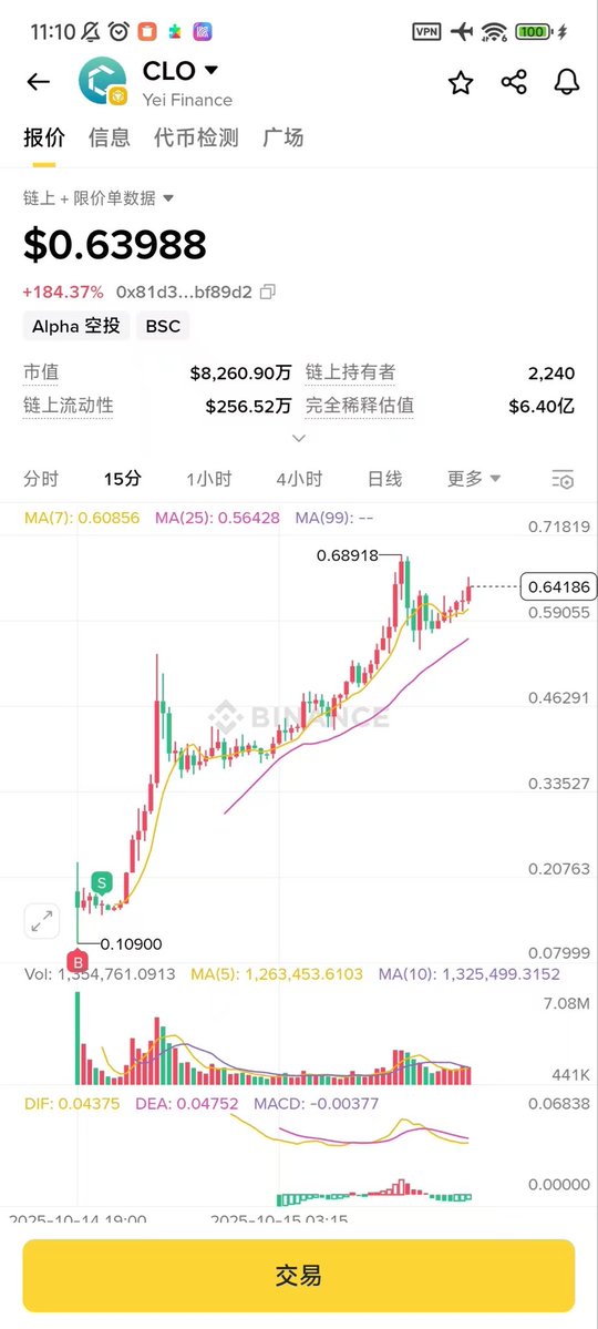 【月光撸空投日记】 亲爱的,最近@SeiNetwork 上的DeFi 项目 Yei Finance @YeiFinance 顺利进行了TGE 同时,他们的代币 $CLO 也上线了币安阿尔法 @binancezh Alpha,社区不少小伙伴们都拿到不错的空投奖励 $CLO 还上了 @BinanceFutures 币安合约,恭喜🎉 $CLO 的代币合约地址CA在 Sei 链和 BSC 链都一样 就是这个:0x81d3a238b02827f62b9f390f947d36d4a5bf89d2 我个人已经完成锁仓,持续支持 Sei 生态项目的发展! 宝子们,欢迎持续关注 还有更多最新消息,马上跟大家分享哦~