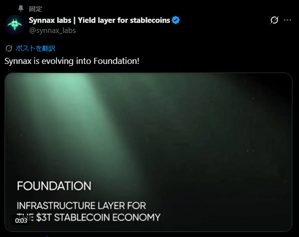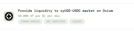 Seiの主力DeFi @YeiFinance の $CLO ローンチが成功して、 @SeiNetwork のDeFiに興味を持った人少しはいると思うので 未TGEのマイナープロジェクトをいくつかの投稿に分けて紹介します。 マイナー過ぎて恐らく日本で紹介してる人はレアすぎるPJばかりになるかと。 今日紹介するのは @synnax_labs 。 フォロワー少ないですが、ちゃんと @SeiNetwork や主要プロトコルに認知されています。 @synnax_labs は、過剰担保型ステーブルコイン $syUSD を発行しており、ステーブルコインのためのイールドレイヤーです。 $USDC や $SEI を担保に $syUSD を発行できますが、現在は追加ミント出来ないため、スワップで $syUSD を獲得し、提携のDeFiでLP運用することでXPが貯まります。現在リブランディングを計画中のようです。 リファ: https://t.co/B1GnUptMI5
