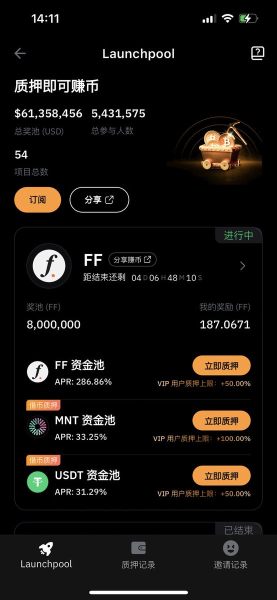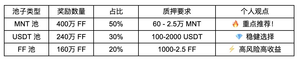 Launchpool 奖池 800 万 FF(≈300 万美金),MNT 持有者是最大受益群体;