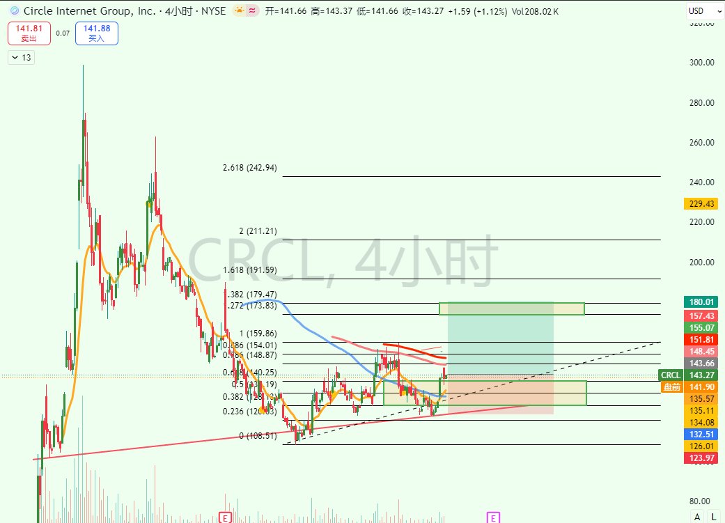 $CRCL 预计在明年1月币市同步到顶之时大概达到180,目前价格为143,大概25%涨幅