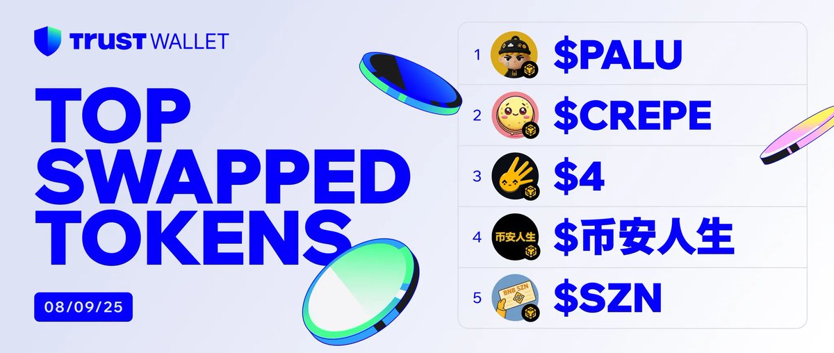 The Top 5 swapped @BNBCHAIN tokens on Trust Wallet in the last 24h are: