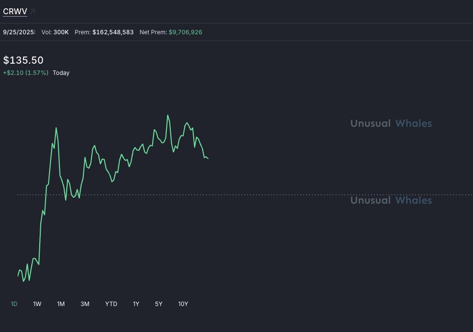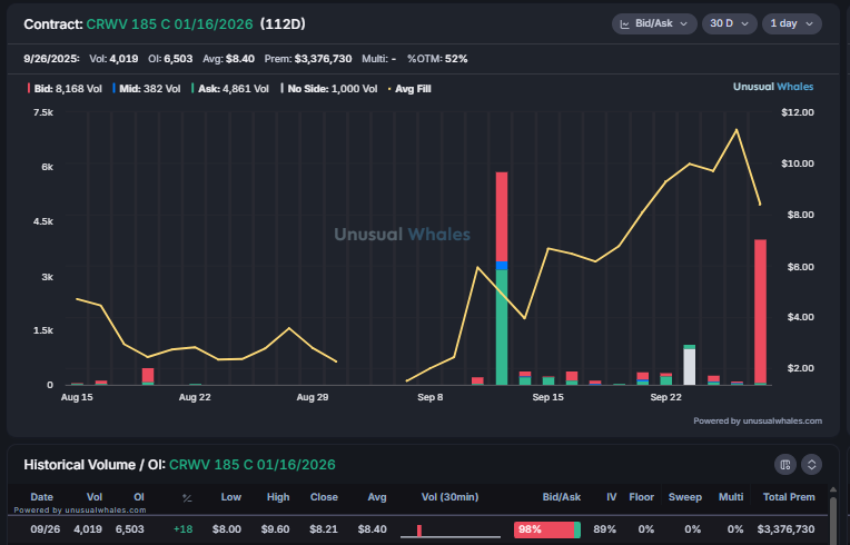 鲸鱼在 $CRWV 140C 12/19/25 合约上损失了 1,920 万美元,平均价格为 10.93 美元 - 这些合约是