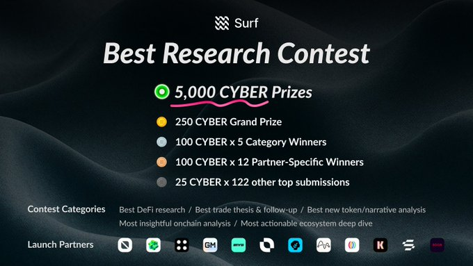 為慶祝全面開放,@Surf_Copilot 搞了場【最佳研究大賽】,狂送 5000 $CYBER