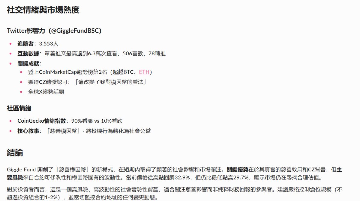 讓它快速研究了最近很火的捐款賽道 $GIGGLE ,快速研究的資料已經很詳盡了,如果用上 deep research 可以獲得更深入的比較