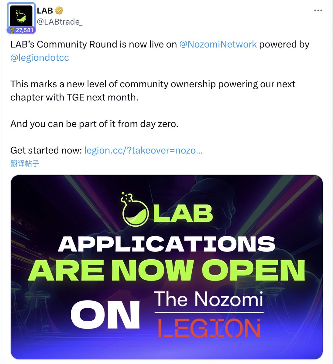 🪂两种姿势埋伏LAB:交易+嘴撸,明牌空投且不卷