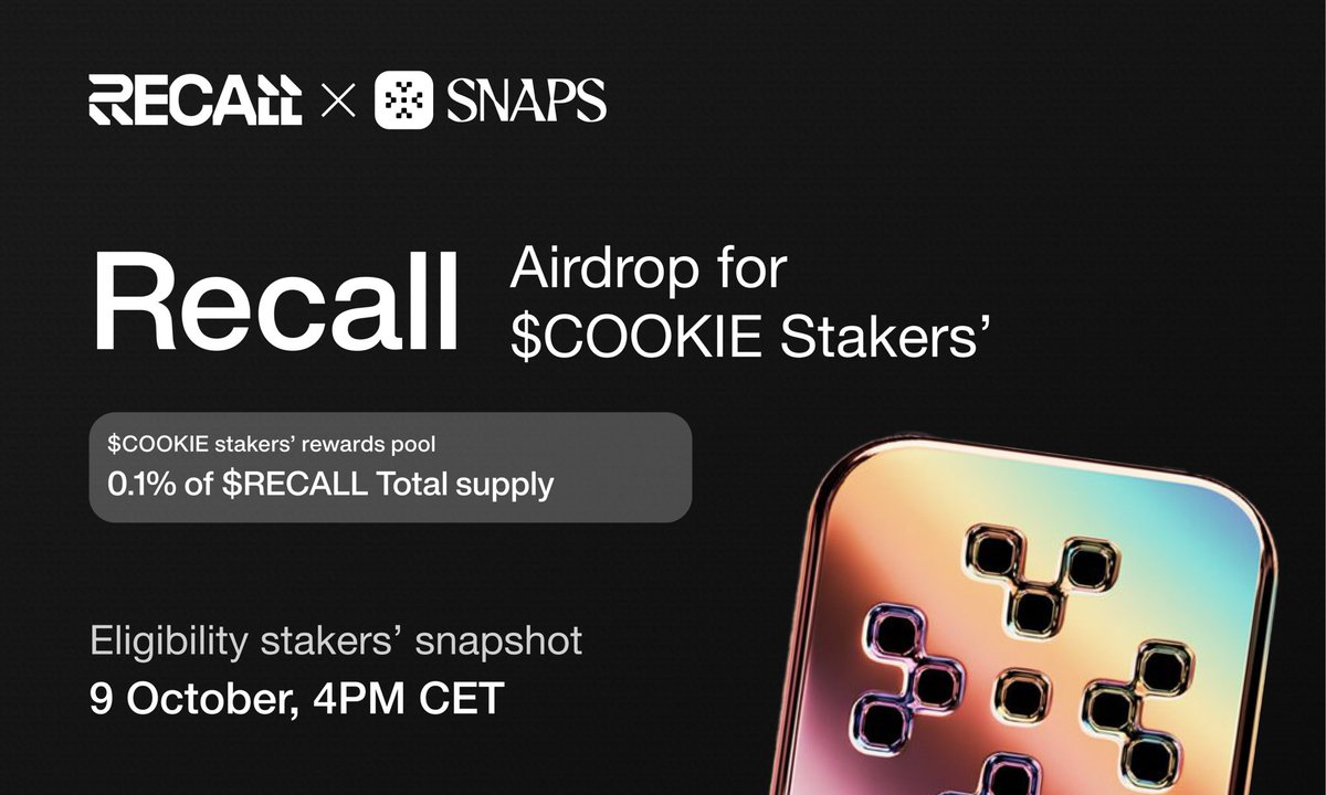 9、 $RECALL Snappers 和 $COOKIE Stakers 可以领取 100% 解锁的空投奖励