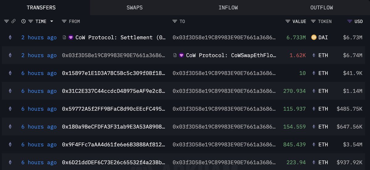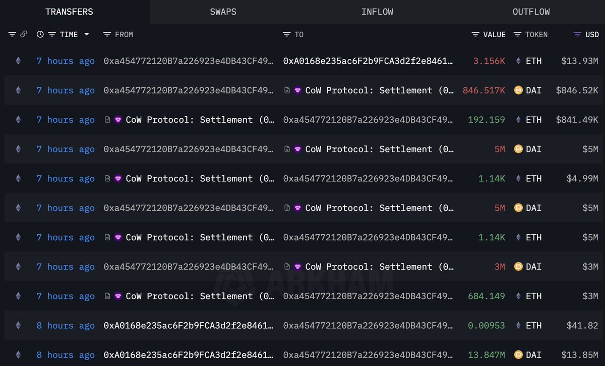 一个小时前,他们花了864万美元的dai购买了2,109.54美元的ETH,价格为4,096美元。