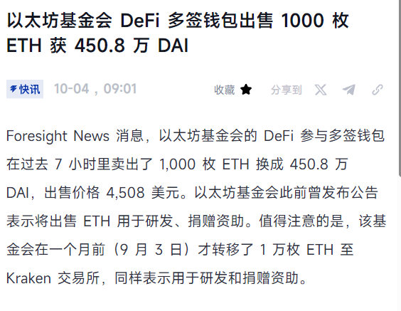 以太坊基金会继续卖币 只是已经无伤大雅了