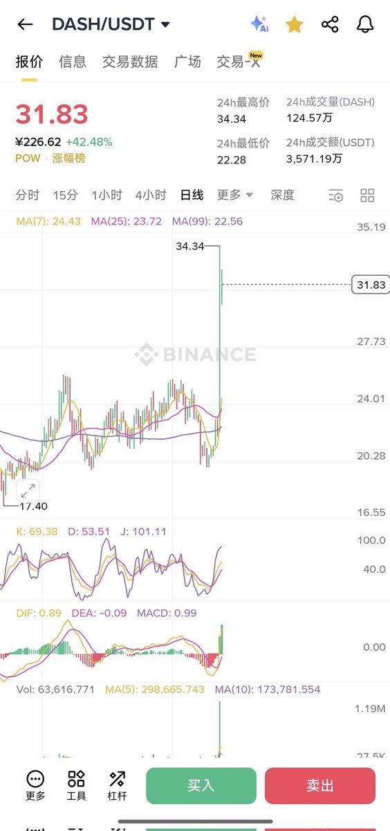 卧槽 拿了一年多你终于有点起色了大师 $DASH ,去年最高72我没卖我后悔了一年,都是泪呀呀呀,下一个我希望大 $G 也能爆发一下 呜呜, $DOT $KSM 会不会联动一下。