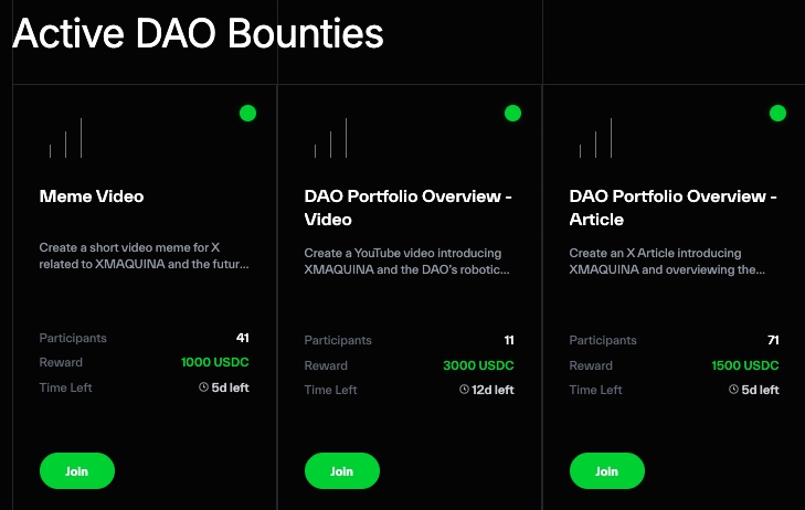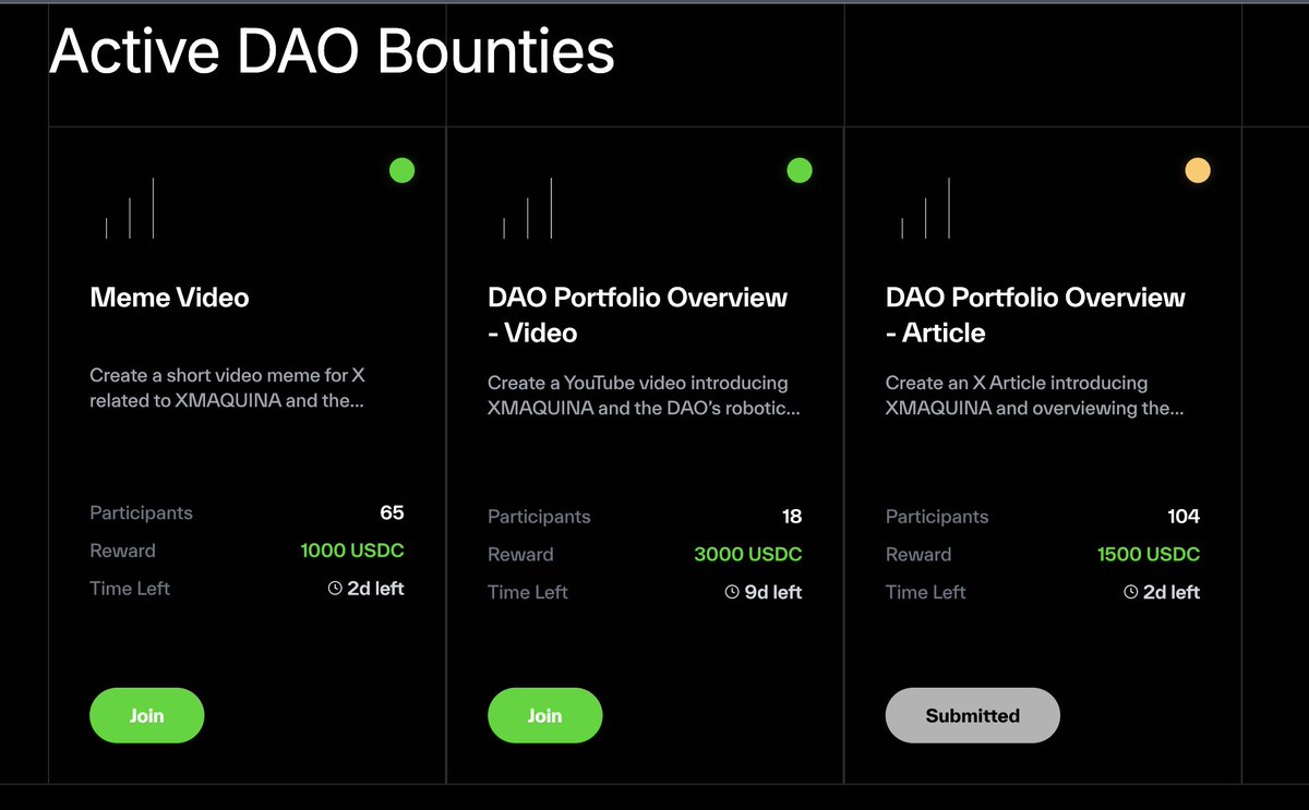 3、DAO 悬赏(最重要):完成实际工作(如设计周边、编写代码仪表盘、制作视频),直接奖励 USDC 或 DEUS代币,并计入排行榜积分