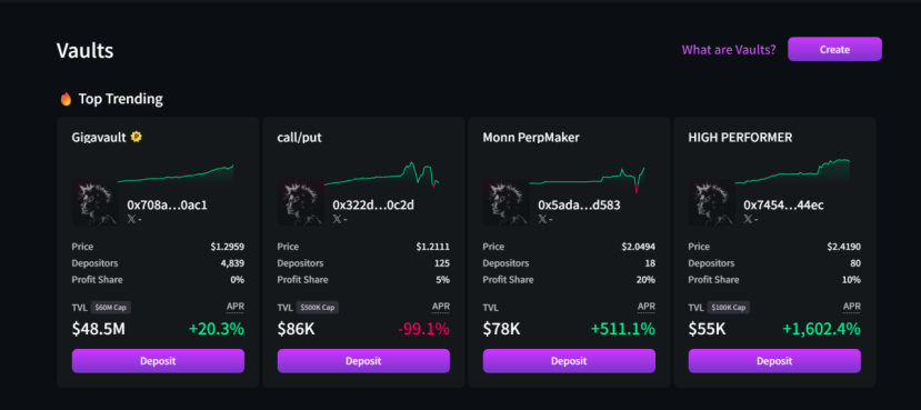 Paradex允许用户抵押资产以接收Vault代币,并从Vault运营商管理的策略中获得收益。目前Vaults包含三大类型:Protocol Vaults、Vault Traded Funds和User Vaults。Protocol Vaults由协议推出,包括Liquidator Vault和Gigavault两款产品,前者通过接管待清算的仓位获得收益,后者则通过Paradex的做市策略获取收益。