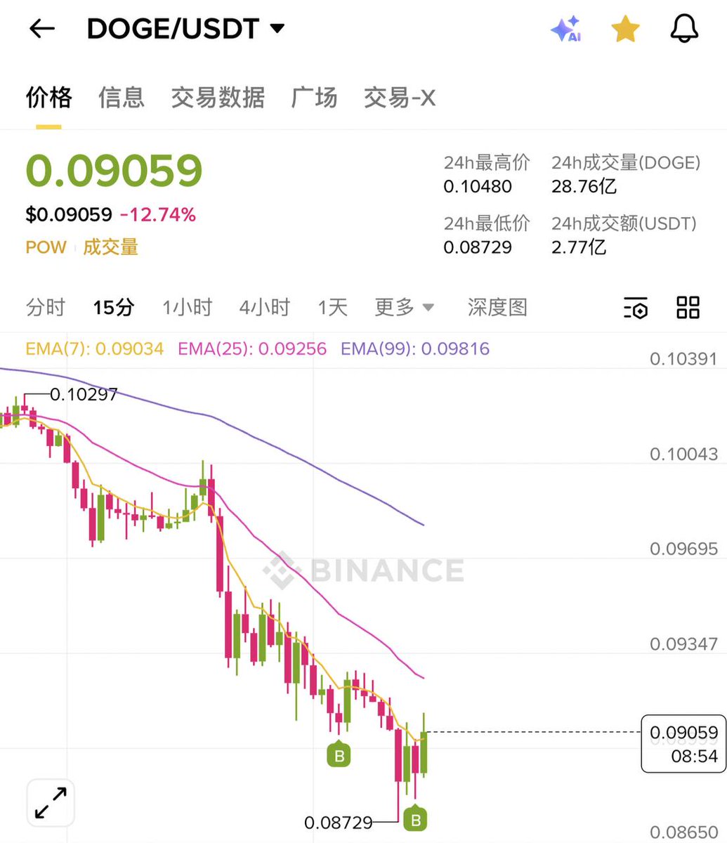 ▶️清算压力:多份报道指出,meme币板块近期杠杆率较高,长仓被迫清算导致连锁下跌。DOGE作为头部meme币,受到波及明显,卖压集中在反弹时段,形成 卖出反弹 sell-the-rally 的格局