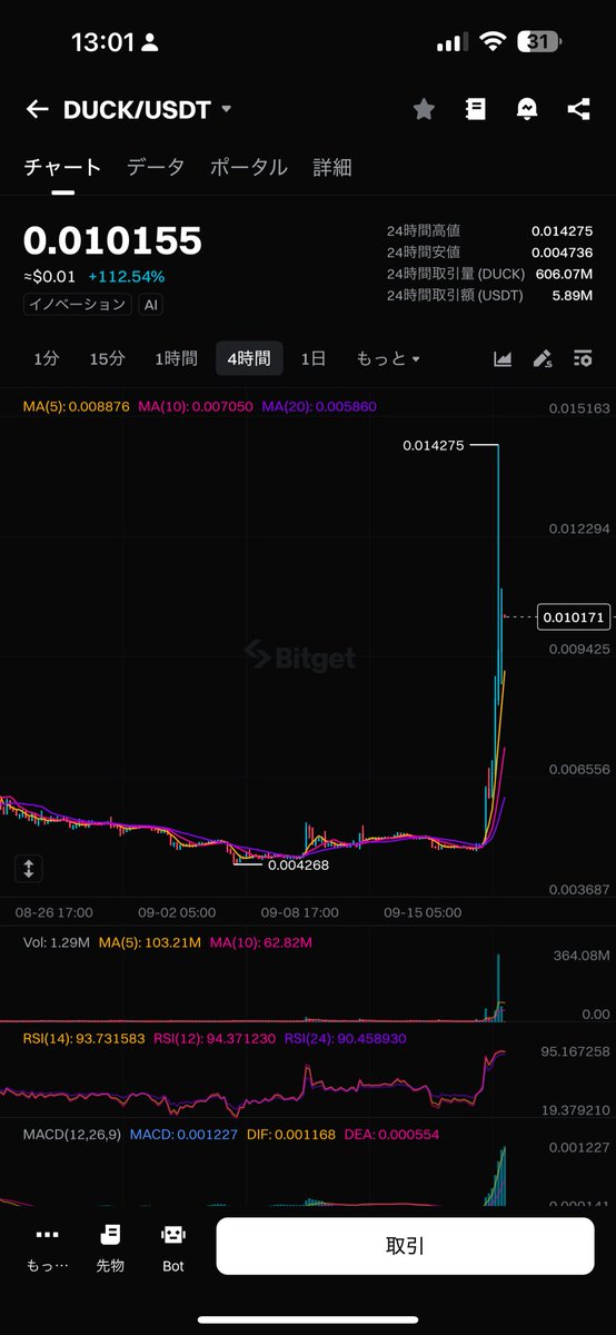 2。$ duck(@duck_chain) - $ 0.0031(+28%)