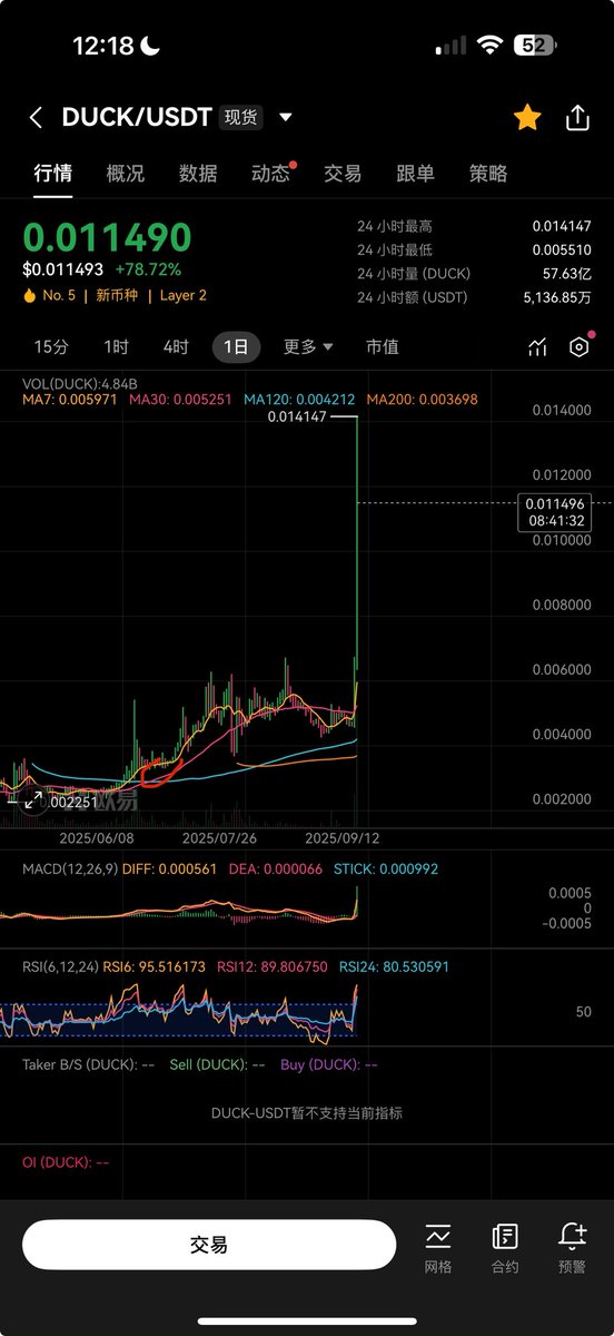 DuckChain搞了个社区投票,决定怎么处理那 5.45 亿个没人领的 $DUCK 代币,结果大多数人都选了销毁!这波直接让总供应量少了 5.45%,流通量砍掉 9.24%,算是给市场加了点稀缺性。另一方面来说DuckChain是OKX+TON的亲儿子,OKX 也投了资,这几天也有拉盘。总结就是:销毁+OKX背书+市场大环境,$DUCK 这波能不能带来量能~~~