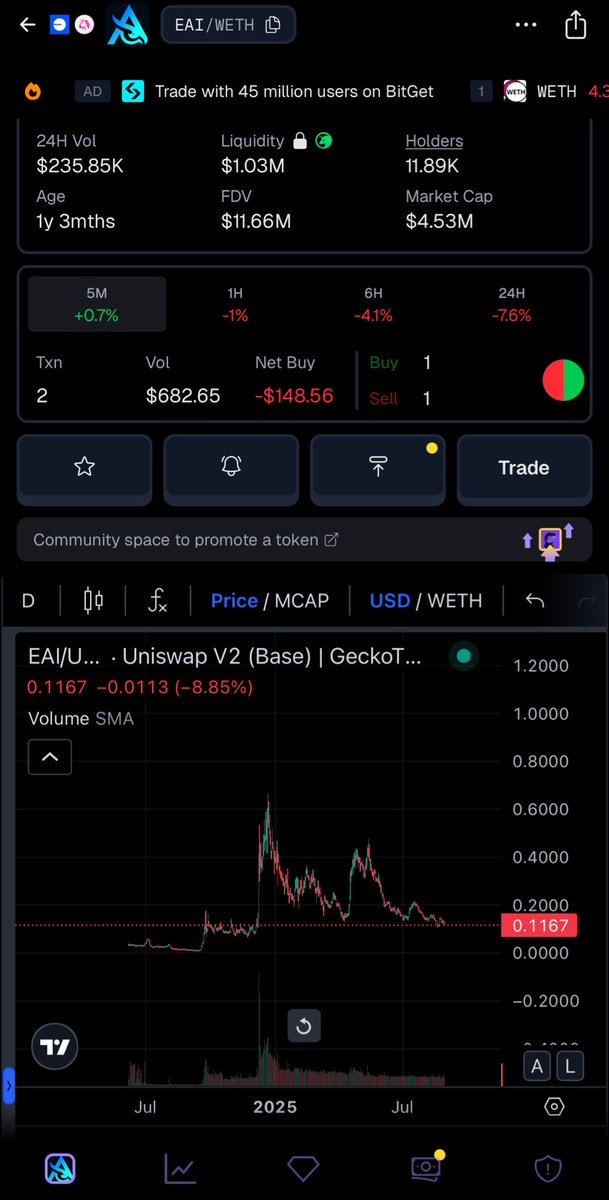 2、在Uniswap购买 $EAI ,这里有点涉及喊单,但是不是投资建议哈,盈亏别骂